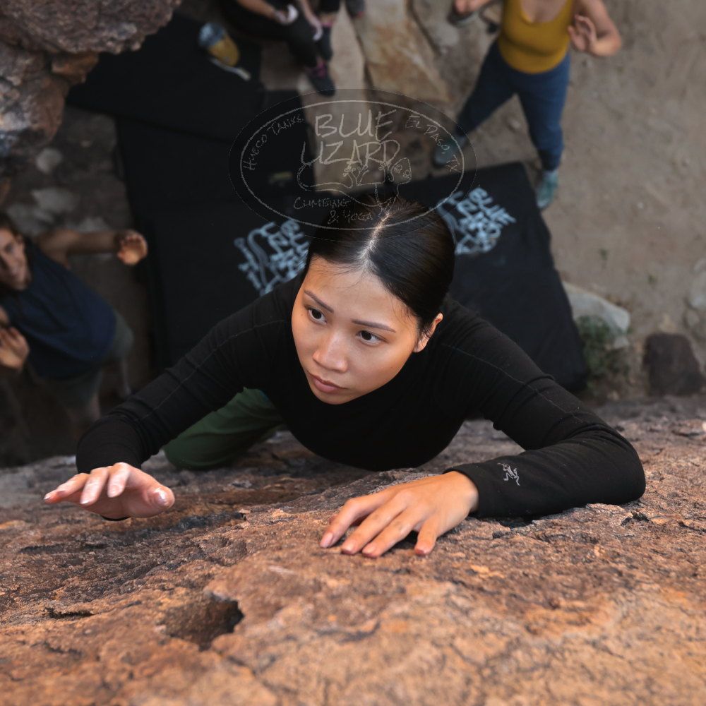 Blue Lizard Climbing and Yoga Hueco Tanks guiding on November 10, 2024, with Alayna, Anika, Becca, Britney, Alison