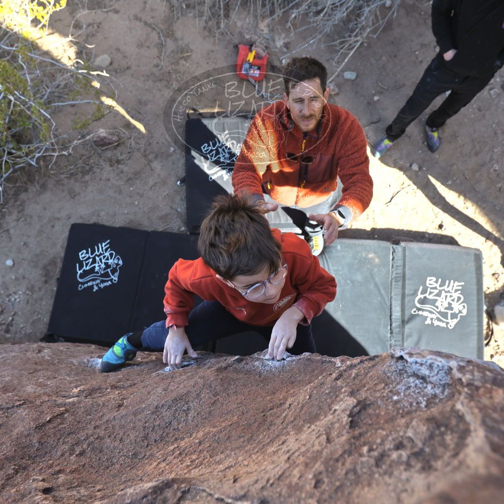 Blue Lizard Climbing and Yoga Hueco Tanks guiding on January 17, 2025, with Andre & Adrian, Elliott & Eme & Harper & Wren, Matt& Ruby& Shannon, and Spencer |