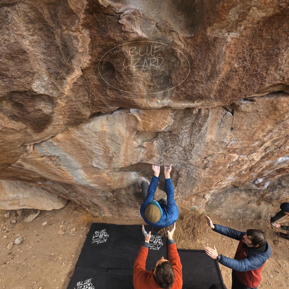 Blue Lizard Climbing and Yoga Hueco Tanks guiding on January 17, 2025, with Andre & Adrian, Elliott & Eme & Harper & Wren, Matt& Ruby& Shannon, and Spencer |