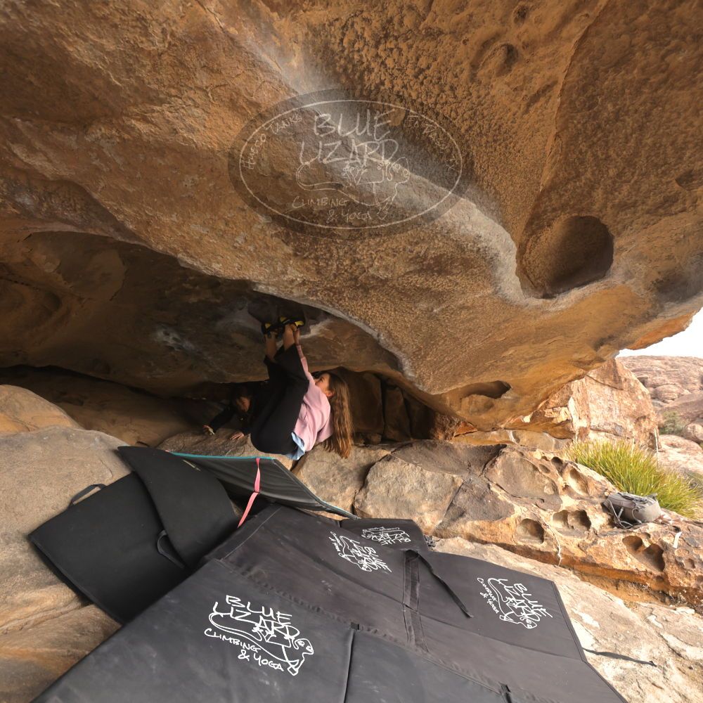 Blue Lizard Climbing and Yoga Hueco Tanks guiding on January 17, 2025, with Andre & Adrian, Elliott & Eme & Harper & Wren, Matt& Ruby& Shannon, and Spencer |