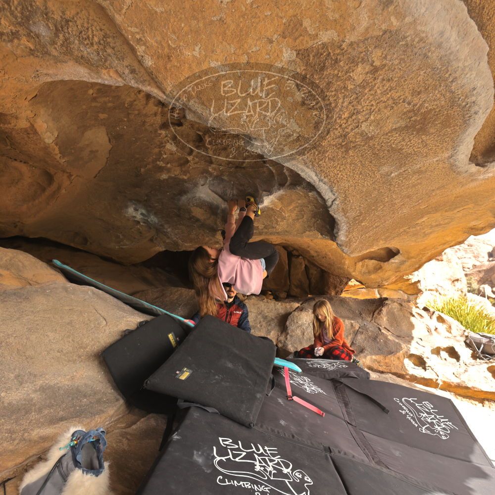 Blue Lizard Climbing and Yoga Hueco Tanks guiding on January 17, 2025, with Andre & Adrian, Elliott & Eme & Harper & Wren, Matt& Ruby& Shannon, and Spencer |