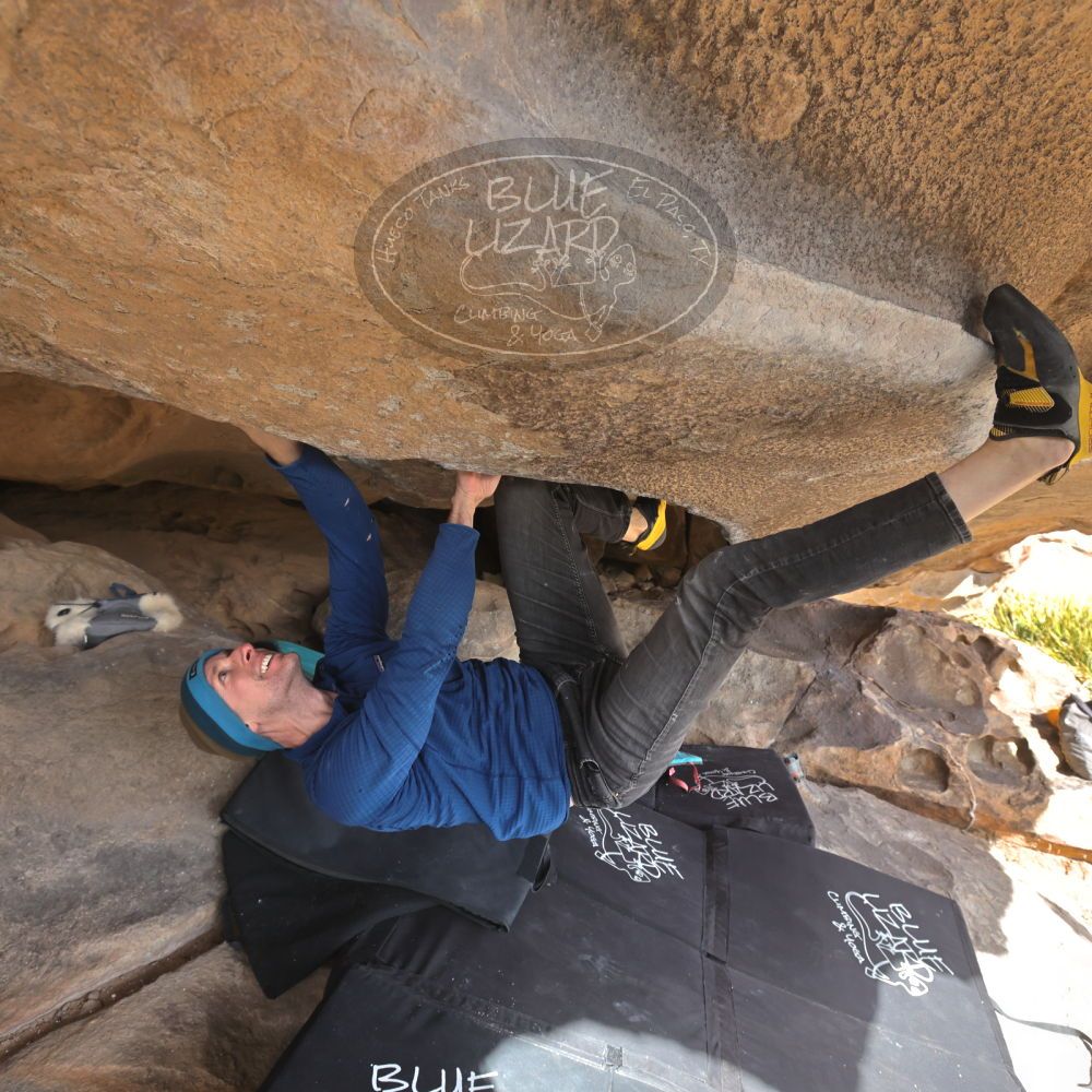 Blue Lizard Climbing and Yoga Hueco Tanks guiding on January 17, 2025, with Andre & Adrian, Elliott & Eme & Harper & Wren, Matt& Ruby& Shannon, and Spencer |