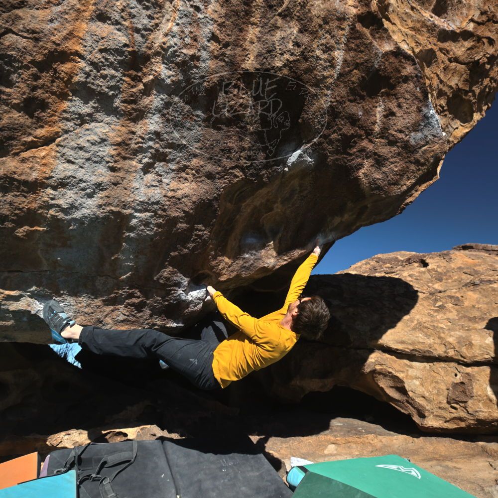 Blue Lizard Climbing and Yoga Hueco Tanks guiding on January 19, 2025, with Keith and Morgan
