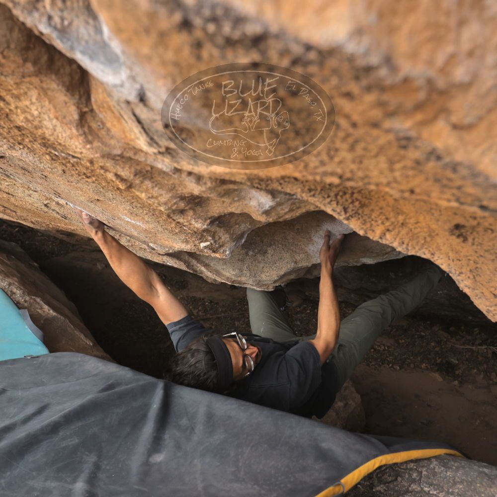 Blue Lizard Climbing and Yoga Hueco Tanks guiding on March 8, 2025, with Adam, Bri, Dan & Chris & Eric, Emily & Louis, and Kayvon |