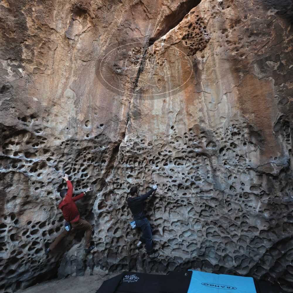 Blue Lizard Climbing and Yoga Hueco Tanks guiding on March 8, 2025, with Adam, Bri, Dan & Chris & Eric, Emily & Louis, and Kayvon |