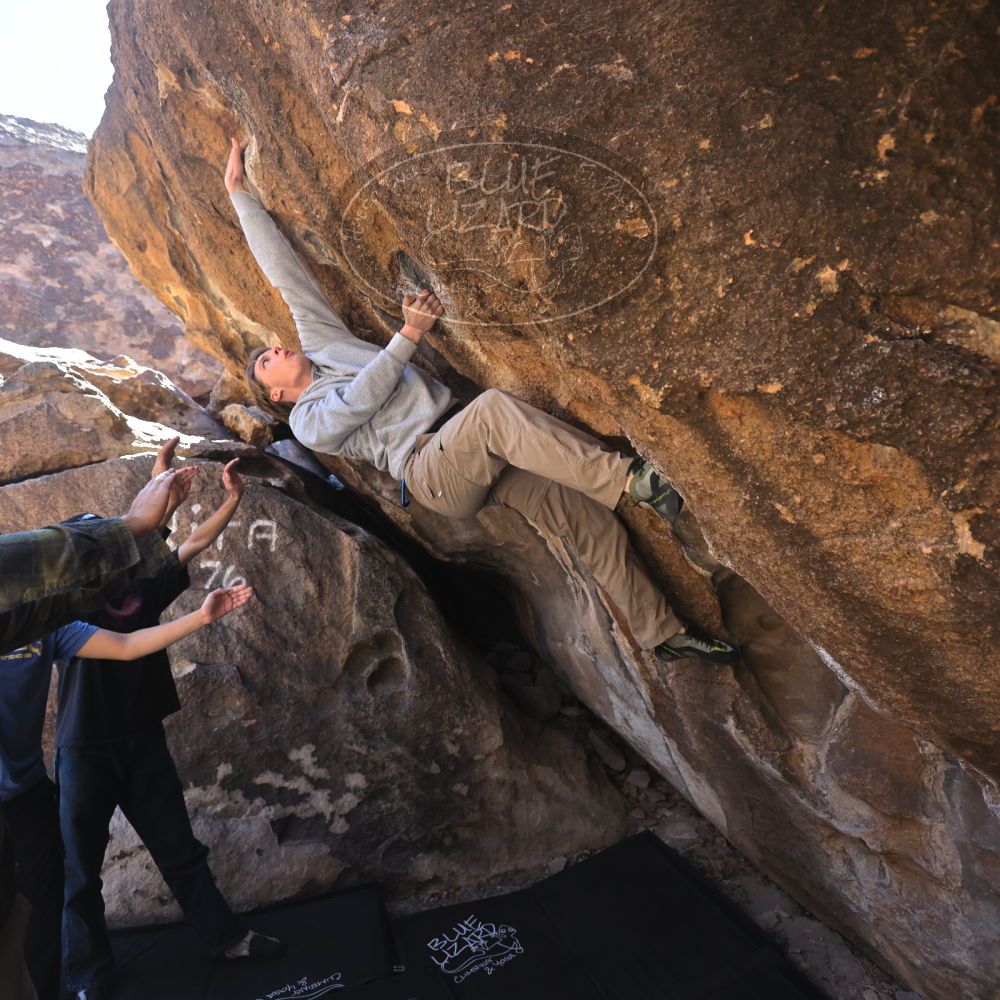Blue Lizard Climbing and Yoga Hueco Tanks guiding on March 16, 2025, with Ash, Ben, Brianna, Matthew, and Riley
