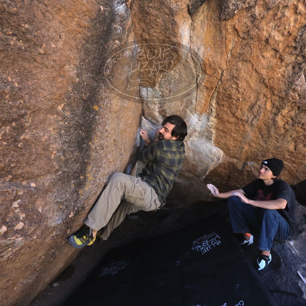 Blue Lizard Climbing and Yoga Hueco Tanks guiding on March 16, 2025, with Ash, Ben, Brianna, Matthew, and Riley