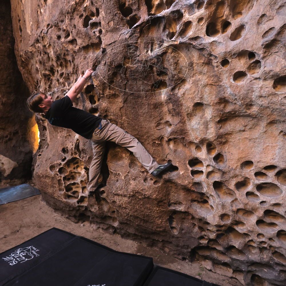 Blue Lizard Climbing and Yoga Hueco Tanks guiding on March 16, 2025, with Ash, Ben, Brianna, Matthew, and Riley