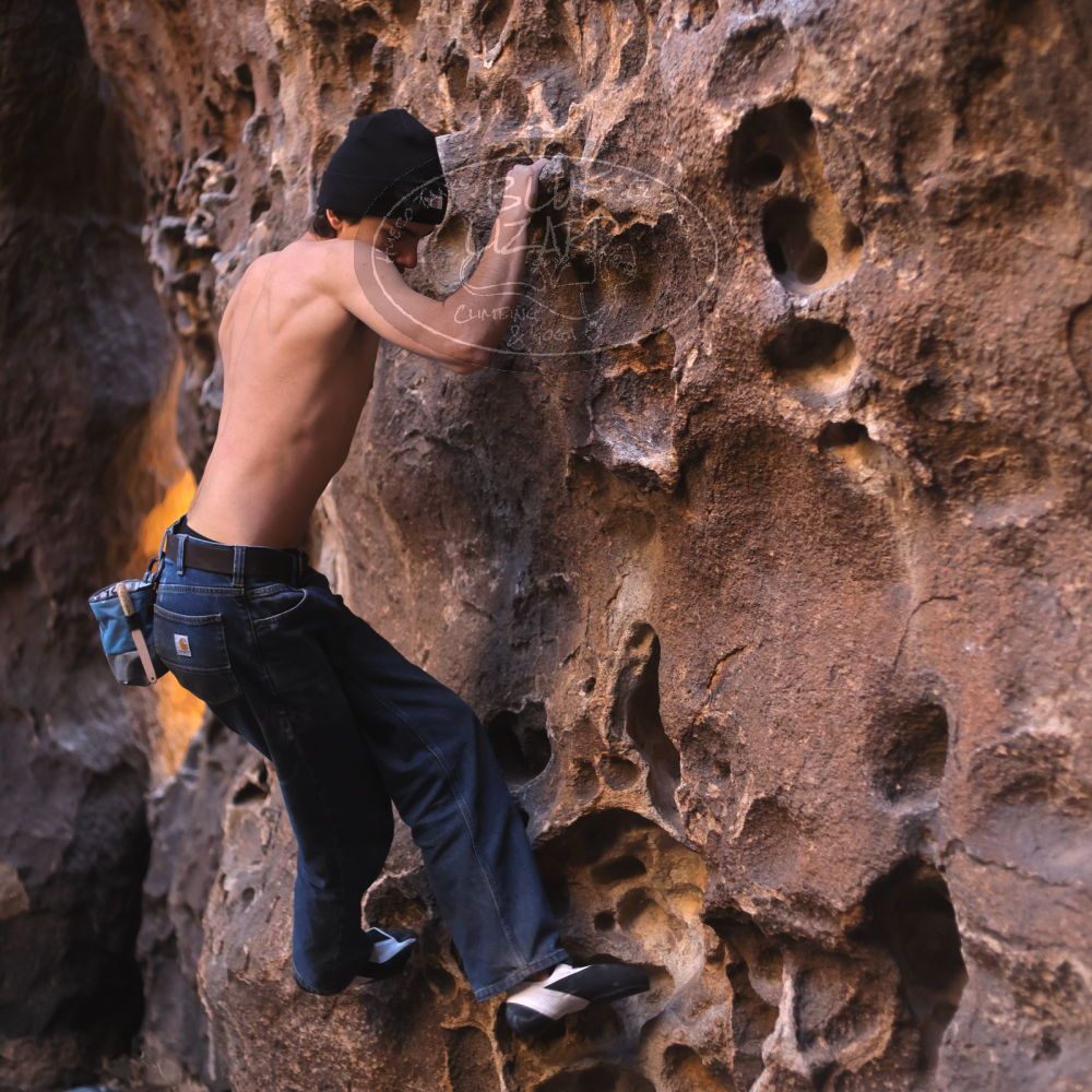 Blue Lizard Climbing and Yoga Hueco Tanks guiding on March 16, 2025, with Ash, Ben, Brianna, Matthew, and Riley