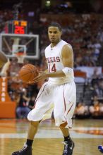 UT sophomore Justin Mason (#24, G).  The University of Texas (UT) Longhorns defeated the University of Kansas Jayhawks 72-69 in Austin, Texas on Monday, February 11, 2008.