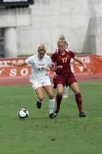 UT sophomore Kate Nicholson (#17, Forward and Midfielder) in the second half.  The University of Texas women's soccer team won 2-1 against the Iowa State Cyclones Sunday afternoon, October 5, 2008.