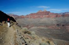 Beth Marek hiking down the South Kaibab trail, backpacking the Grand Canyon with Beth, Thursday, January 1, 2009.