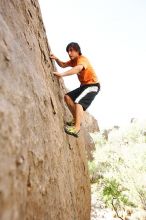Raanan Robertson rock climbing in Hueco Tanks State Park and Historic Site during the Hueco Tanks Awesome Fest 2010 trip, Friday, May 21, 2010.