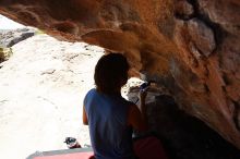 Beth Marek rock climbing in Hueco Tanks State Park and Historic Site during the Hueco Tanks Awesome Fest 2010 trip, Saturday, May 22, 2010.