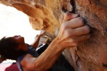 Javier Morales rock climbing in Hueco Tanks State Park and Historic Site during the Hueco Tanks Awesome Fest 2010 trip, Saturday, May 22, 2010.