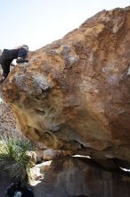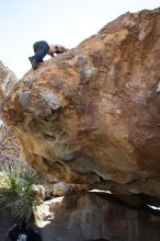 Andrew Dreher rock climbing on No One Gets Out of Here Alive (V2) in Hueco Tanks State Park and Historic Site during the Hueco Tanks Awesome Fest 2010 trip, Sunday, May 23, 2010.