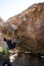 Raanan Robertson rock climbing on No One Gets Out of Here Alive (V2) in Hueco Tanks State Park and Historic Site during the Hueco Tanks Awesome Fest 2010 trip, Sunday, May 23, 2010.