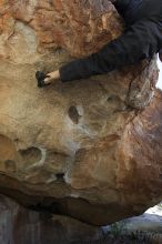 Andrew Dreher rock climbing on No One Gets Out of Here Alive (V2) in Hueco Tanks State Park and Historic Site during the Hueco Tanks Awesome Fest 2010 trip, Sunday, May 23, 2010.