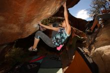 Blue Lizard Climbing and Yoga Hueco Tanks guiding on November 20, 2016, with Olivia and Ceci