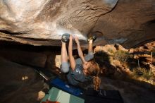 Blue Lizard Climbing and Yoga Hueco Tanks guiding on November 20, 2016, with Olivia and Ceci