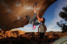 Blue Lizard Climbing and Yoga Hueco Tanks guiding on November 20, 2016, with Olivia and Ceci
