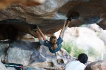 Blue Lizard Climbing and Yoga Hueco Tanks guiding on November 20, 2016, with Olivia and Ceci
