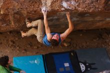 Blue Lizard Climbing and Yoga Hueco Tanks guiding on November 24, 2016, with Olivia
