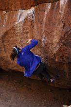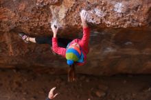 Blue Lizard Climbing and Yoga Hueco Tanks guiding on November 24, 2016, with Olivia