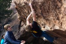 Blue Lizard Climbing and Yoga Hueco Tanks guiding, Kyle, Sam, and Sophie, on December 25, 2016