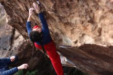 Blue Lizard Climbing and Yoga Hueco Tanks guiding, Kyle, Sam, and Sophie, on December 25, 2016