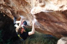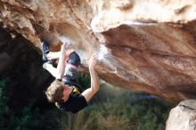 Blue Lizard Climbing and Yoga Hueco Tanks guiding, Kyle, Sam, and Sophie, on December 25, 2016