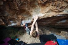 Blue Lizard Climbing and Yoga Hueco Tanks guiding, Kyle, Sam, and Sophie, on December 25, 2016