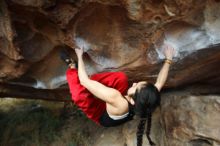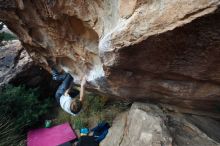 Blue Lizard Climbing and Yoga Hueco Tanks guiding, Kyle, Sam, and Sophie, on December 25, 2016