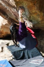 Blue Lizard Climbing and Yoga Hueco Tanks guiding, Kyle, Sam, and Sophie, on December 25, 2016
