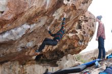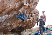 Blue Lizard Climbing and Yoga Hueco Tanks guiding, Kyle, Sam, and Sophie, on December 25, 2016