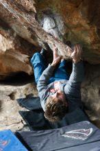 Blue Lizard Climbing and Yoga Hueco Tanks guiding, Kyle, Sam, and Sophie, on December 25, 2016