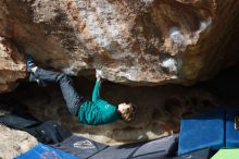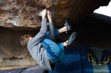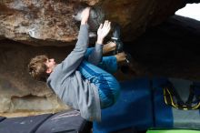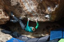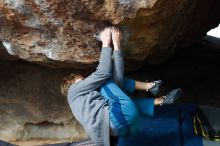 Blue Lizard Climbing and Yoga Hueco Tanks guiding, Kyle, Sam, and Sophie, on December 25, 2016