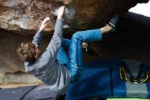 Blue Lizard Climbing and Yoga Hueco Tanks guiding, Kyle, Sam, and Sophie, on December 25, 2016