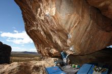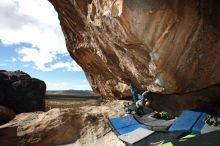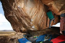 Blue Lizard Climbing and Yoga Hueco Tanks guiding, Kyle, Sam, and Sophie, on December 25, 2016