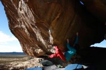 Blue Lizard Climbing and Yoga Hueco Tanks guiding, Kyle, Sam, and Sophie, on December 25, 2016