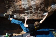 Blue Lizard Climbing and Yoga Hueco Tanks guiding, Kyle, Sam, and Sophie, on December 25, 2016