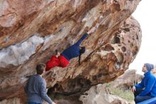 Blue Lizard Climbing and Yoga Hueco Tanks guiding, Kyle, Sam, and Sophie, on December 25, 2016
