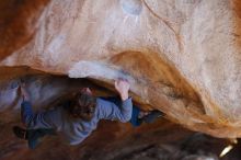 Blue Lizard Climbing and Yoga Hueco Tanks guiding, Kyle, Sam, and Sophie, on December 25, 2016