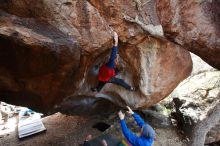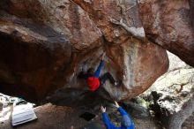 Blue Lizard Climbing and Yoga Hueco Tanks guiding, Kyle, Sam, and Sophie, on December 26, 2016