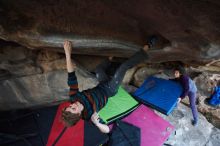 Blue Lizard Climbing and Yoga Hueco Tanks guiding, Kyle, Sam, and Sophie, on December 26, 2016