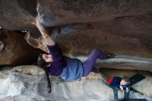 Blue Lizard Climbing and Yoga Hueco Tanks guiding, Kyle, Sam, and Sophie, on December 26, 2016