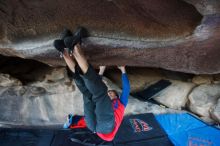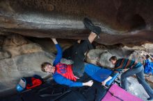 Blue Lizard Climbing and Yoga Hueco Tanks guiding, Kyle, Sam, and Sophie, on December 26, 2016