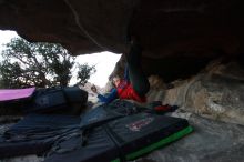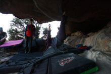 Blue Lizard Climbing and Yoga Hueco Tanks guiding, Kyle, Sam, and Sophie, on December 26, 2016