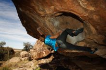 Blue Lizard Climbing and Yoga Hueco Tanks guiding, Kyle, Sam, and Sophie, on December 26, 2016