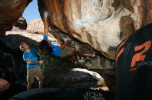 Blue Lizard Climbing and Yoga Hueco Tanks guiding on October 19, 2018 with Craig, Joe, and Devon